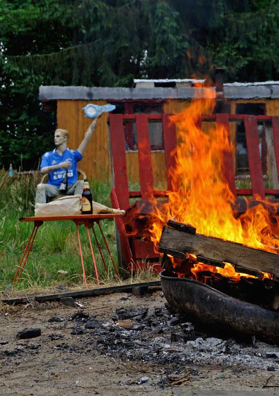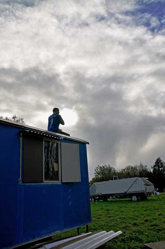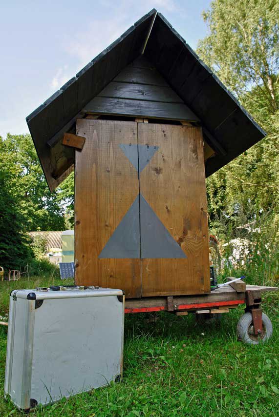 Een objectief verhaal in foto’s over de Grote Verhuizing van een groep vindingrijke idealisten. Zie hoe de wagens de rails trotseren, hoe hond Murmel het stuur overneemt, de scharrelkip een fiets ontwijkt, hoe stadsnomade T. een wilgenteen plant, terwijl de ploeg zich in de vette klei boort. Grijnzende opleggers, stoere tractoren, hippe helofytenfilters, tiny homes en reusachtige bouwketen…